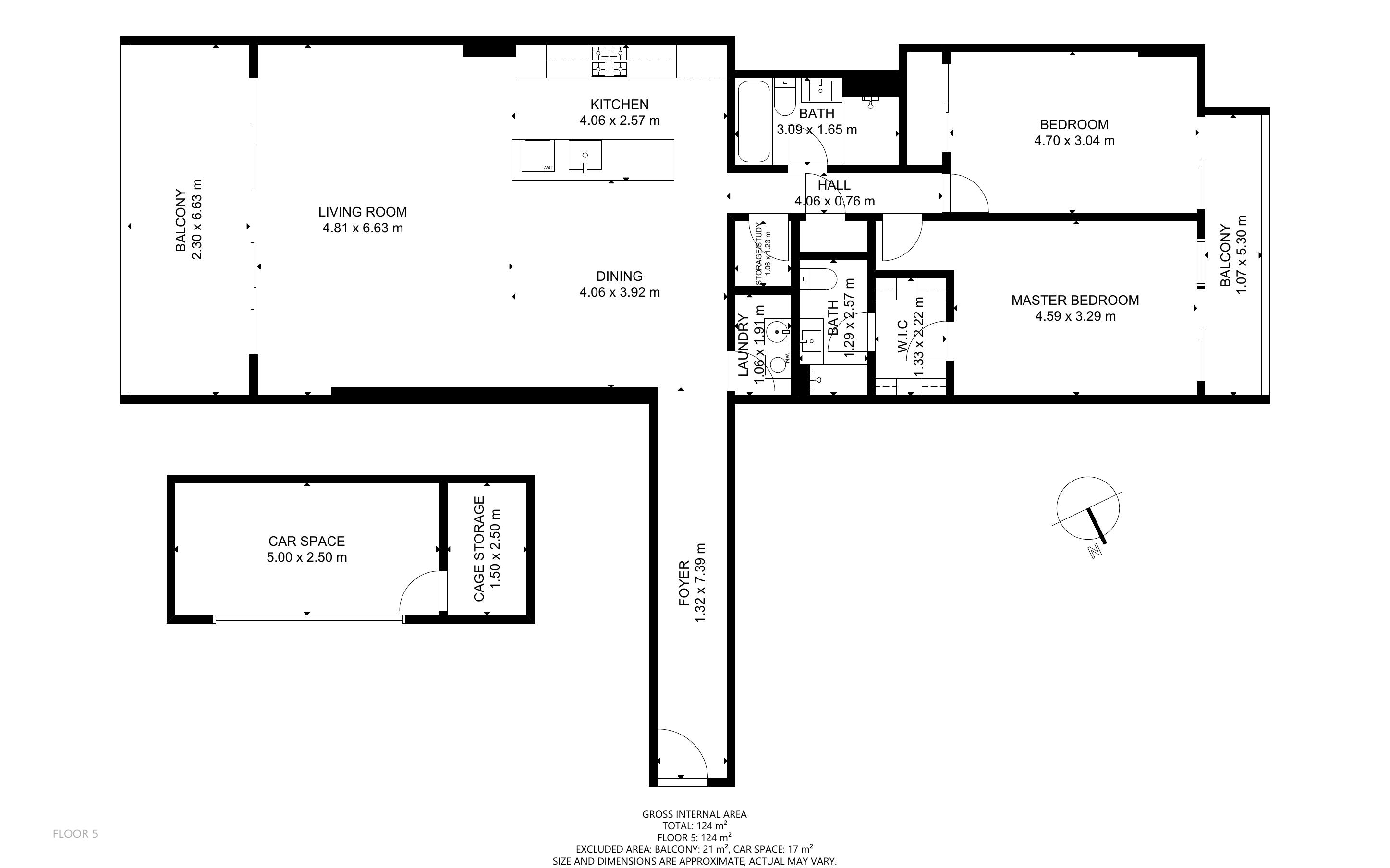 Secure car spot and storage cage in underground basement carpark