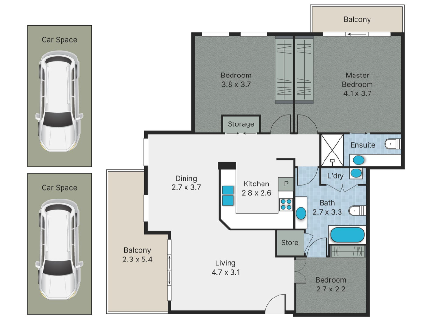 * 2 designated undercover car spaces
