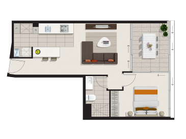 Bright and spacious one bedroom unit in the Mosaic building ideal for someone wanting to live in the heart of it all. This unit is a unique layout in Mosaic which has a traditional balcony and a seperate kitchen.