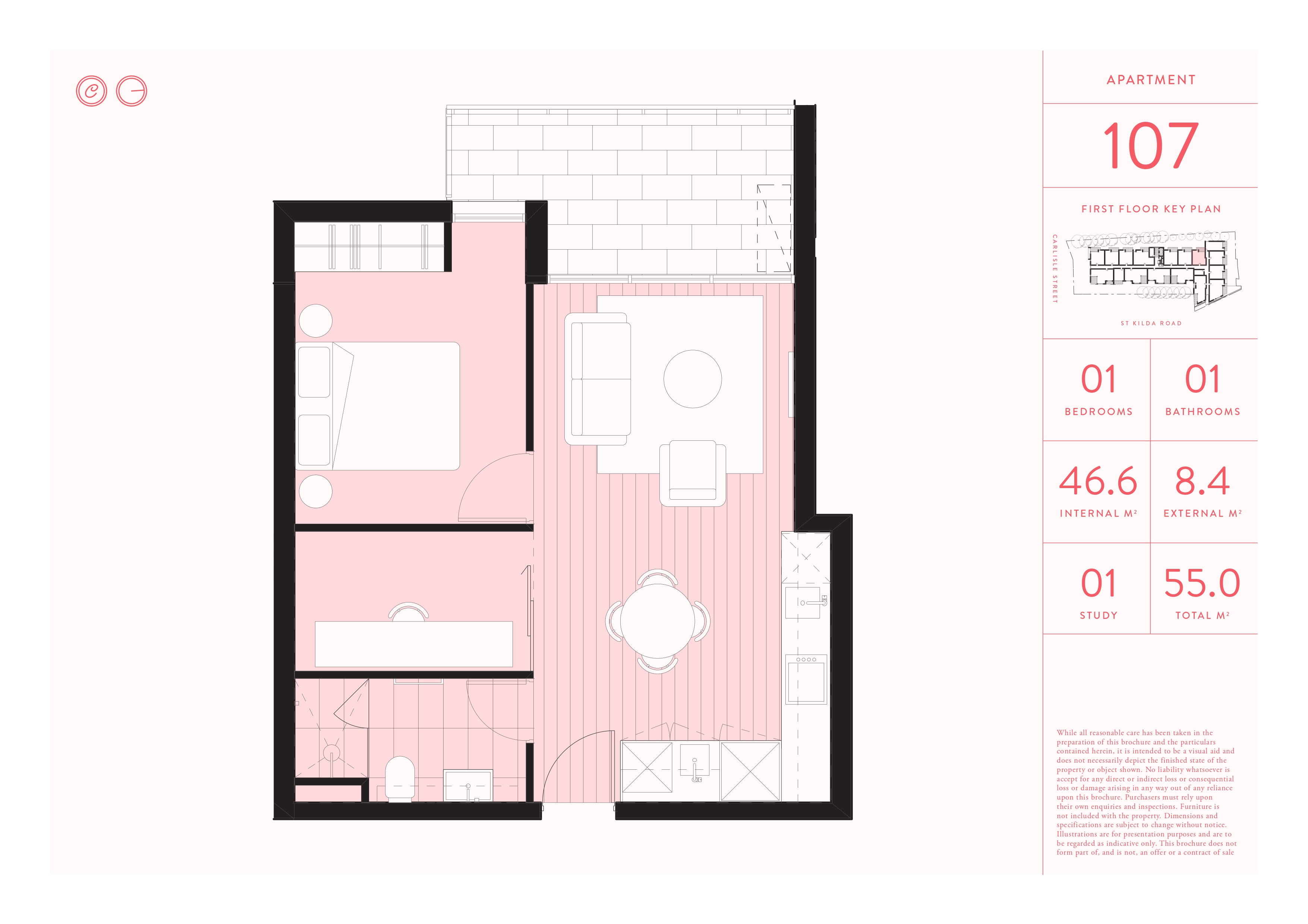 Spacious 1 bedroom + study apartment situated in security block within minutes to trams & shops