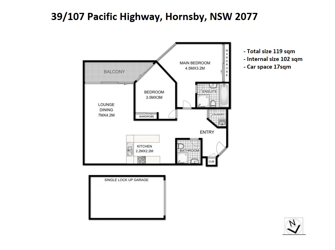 + Total size 119 sqm - Internal size 102 sqm + Car space 17sqm
