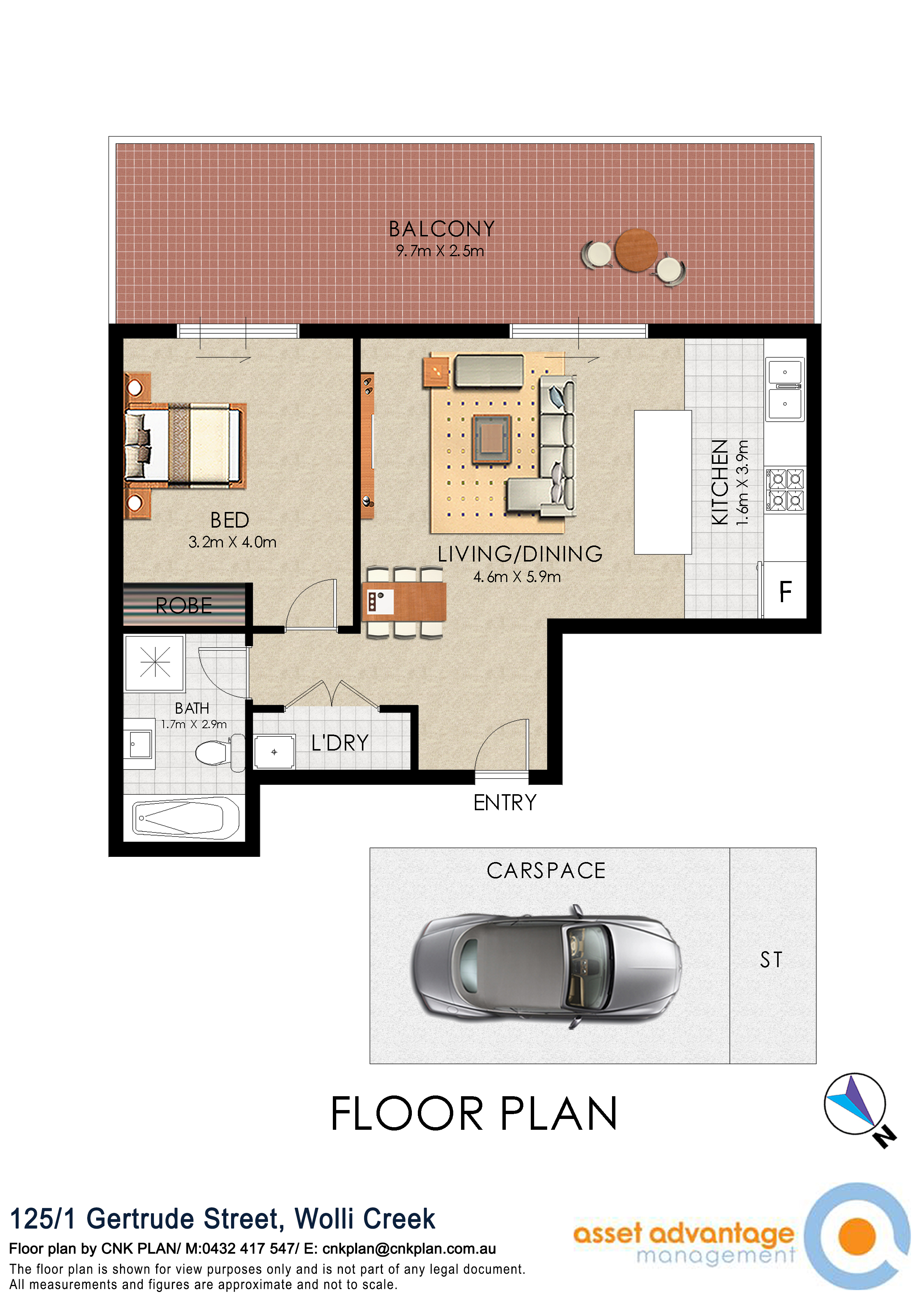 • 1 car space in security carpark with storage cage