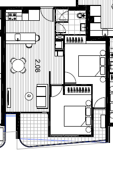 * Living area with Daikin Split system and sliding glass doors leading to your spacious private balcony.