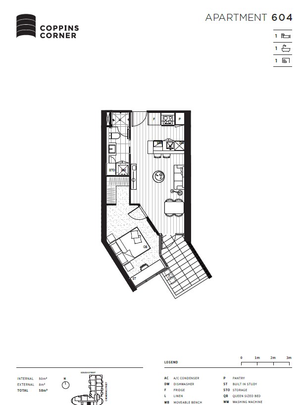 Apartment features open plan living with floating floorboards, balcony off living, reverse cycle heating/cooling, fabulous ultra-modern kitchen with stone benchtop, European appliances and integrated dishwasher, fully tiled designer bathroom, large light filled bedroom with built in robes, built in desk, and plush carpet, and a European laundry.