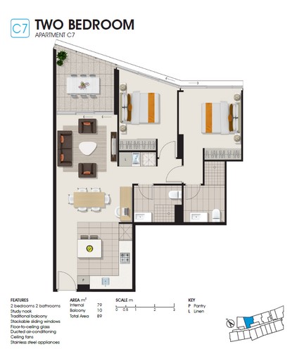 Benefitting from a well-considered layout, the apartment encompasses a spacious open-plan living and dining area that is accompanied by a functional study nook. A semi-enclosed balcony extends the entertainment options, providing a superb setting for toasting the sunset and sharing a delightful al fresco meal.