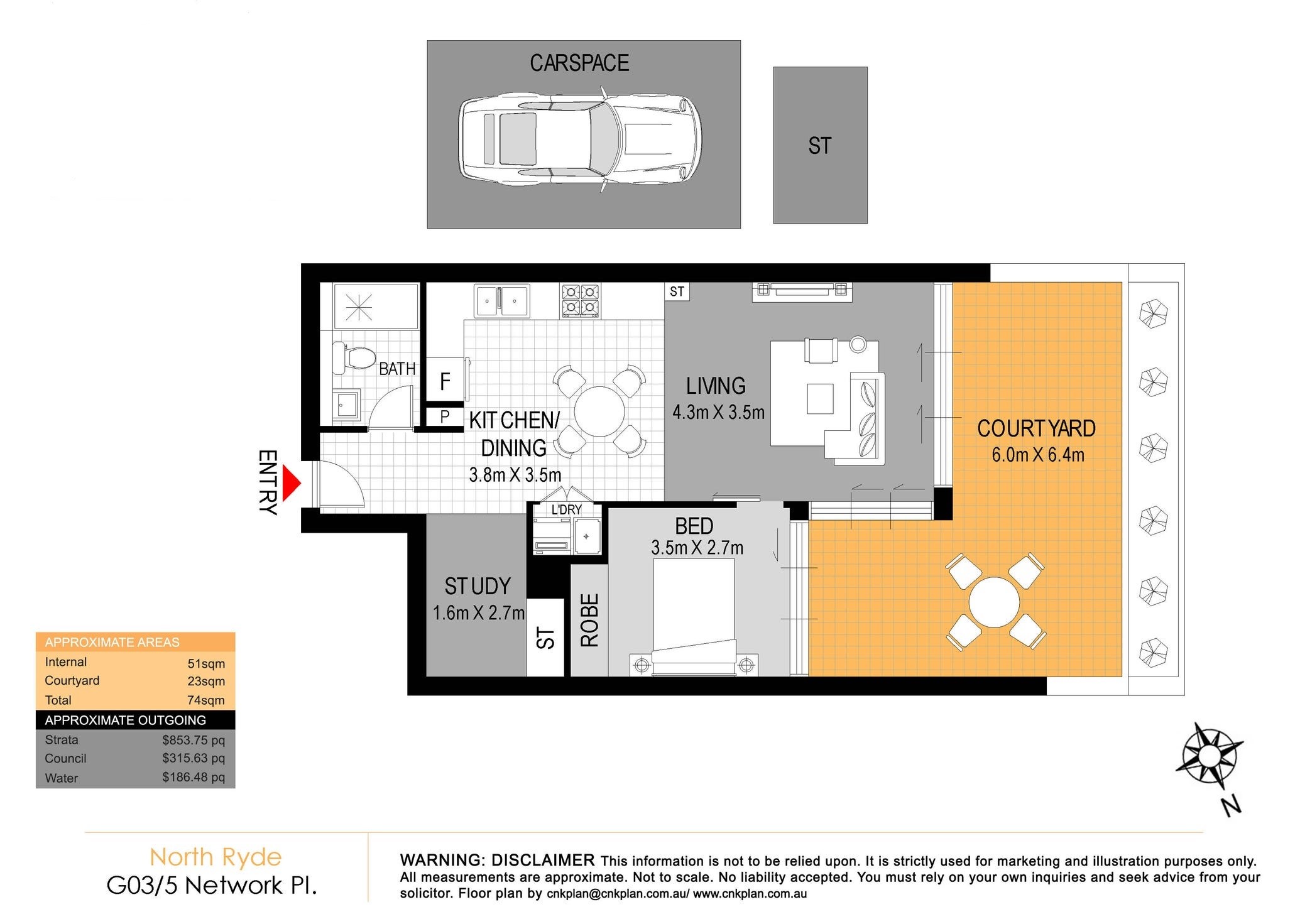 Near New 1Bed + STUDY + COURTYARD total 74sqm Superb Apartment!
