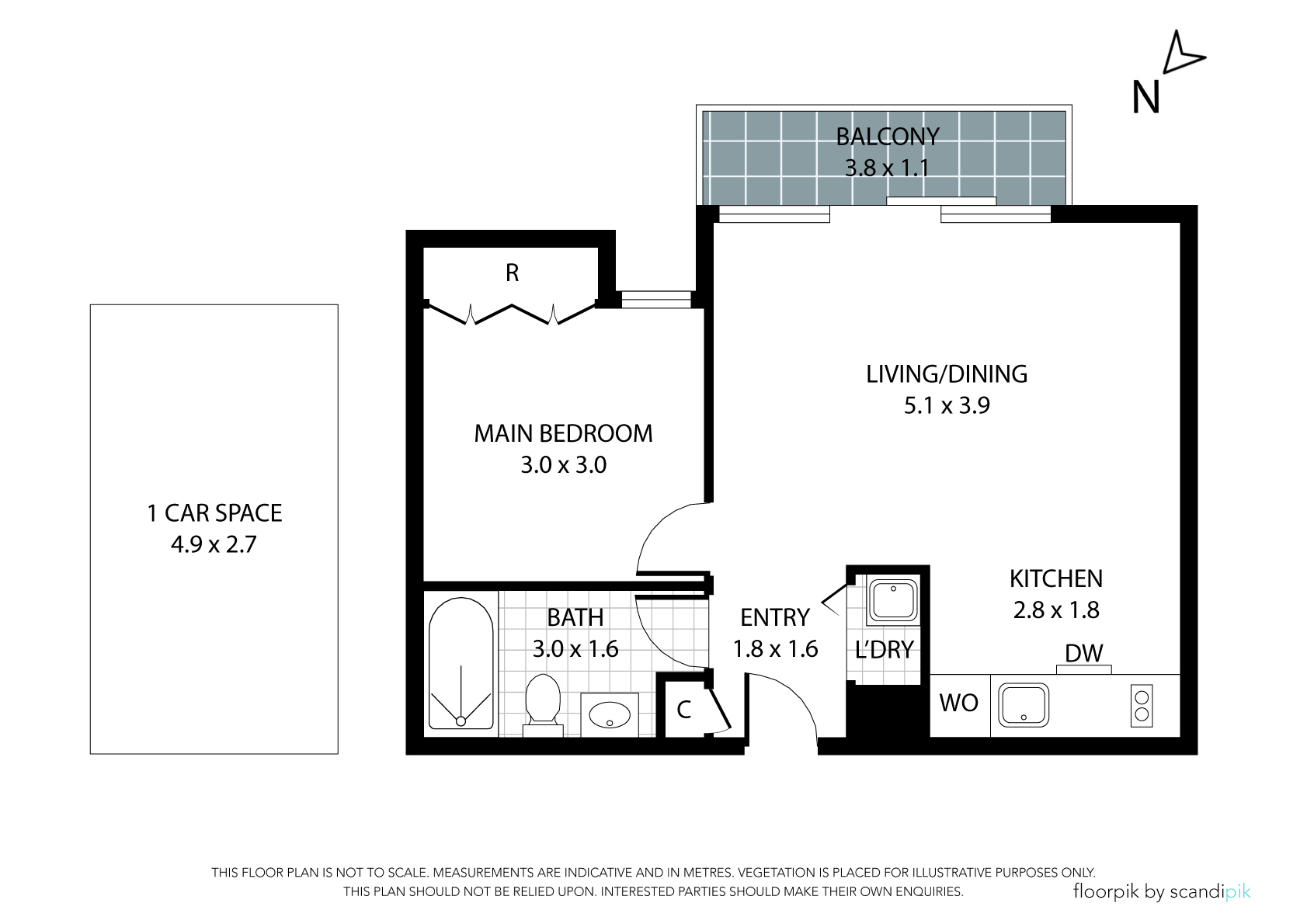 • One generously sized, well lit bedroom with built-in wardrobes