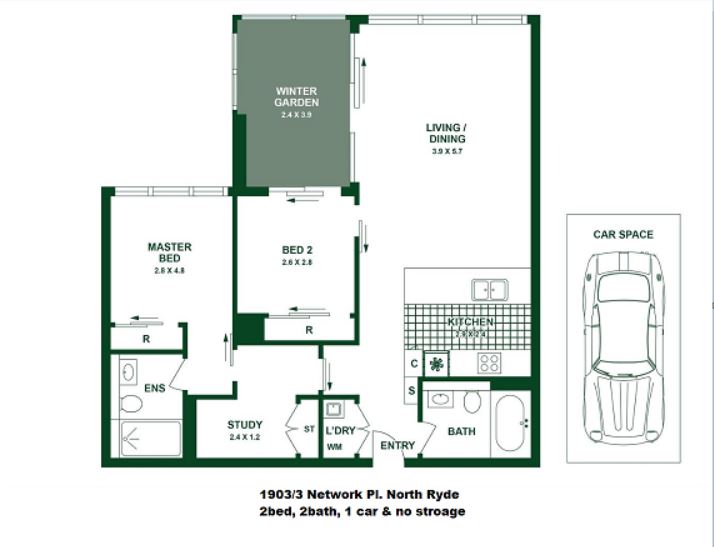 • 1 x Secure car space(No storage)