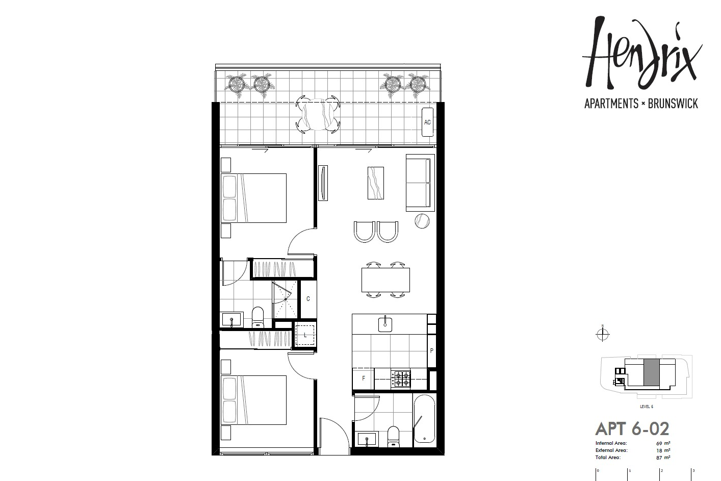 This luxe top floor Penthouse apartment features two double bedrooms with floor to ceiling BIR’s, split system heating and cooling, a spacious bathroom with vanity with ample storage as well as an ensuite.