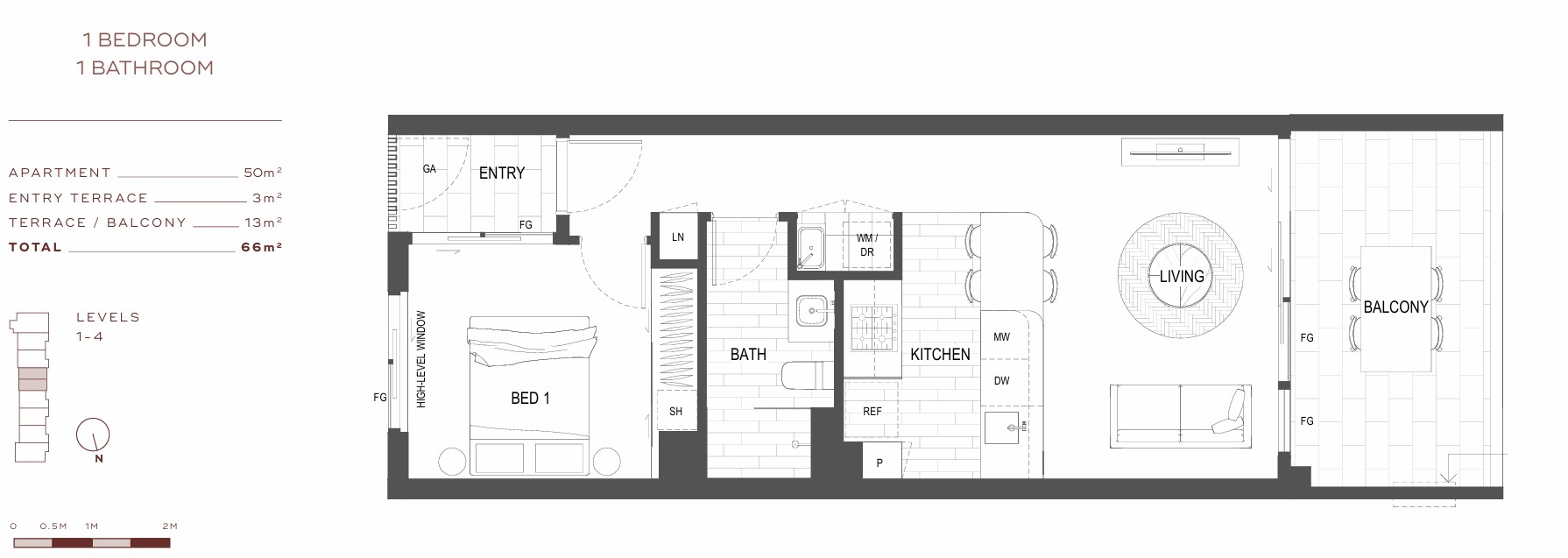 - Open-plan living areas flow seamlessly onto the balcony